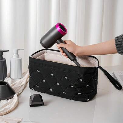 1个3D蝴蝶结造型吹风机收纳袋,多功能卷发棒收纳袋,吹风机配件便携旅行包,口红化妆刷护肤品收纳袋,化妆品收纳袋 - 彩色 - 查看 10
