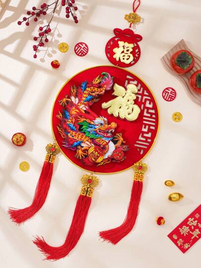 1個立體3d龍年裝飾掛牌,用於新年裝飾,春節,客廳,入口,牆面等。尺寸:90cm X 32cm - 紅色 - 查看 1