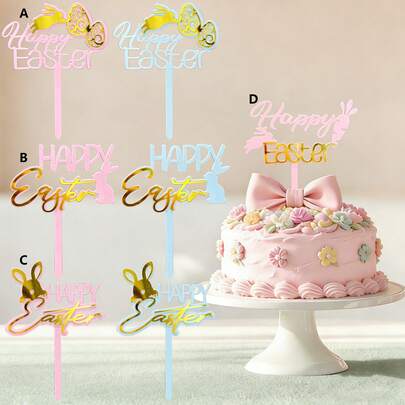 1个/3个/6个粉色和蓝色复活节快乐亚克力蛋糕装饰插牌,兔子蝴蝶造型,适用于复活节派对装饰 - 彩色 - 查看 22