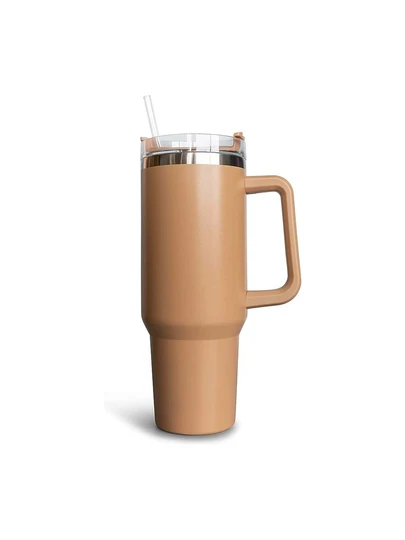 1只40oz啡色不銹鋼保溫旅行咖啡杯,帶手柄和吸管,適用於冷熱飲料 - 咖啡棕 - 查看 4