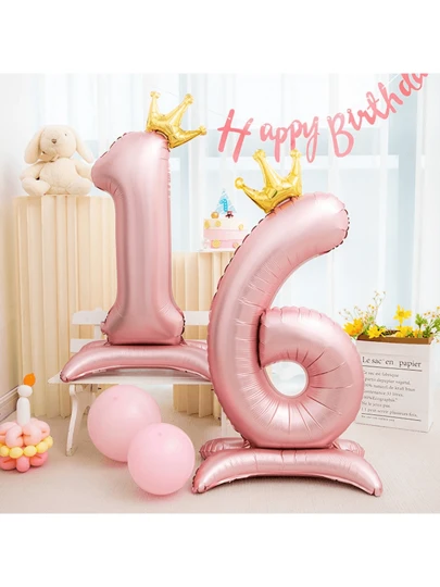 1 件 42 英寸粉色立式底座皇冠数字 0-9 周年生日派对庆祝婚礼装饰 - 粉色 - 查看 10