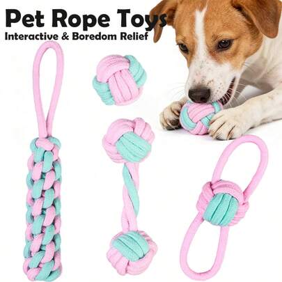 1件/4件套互动式狗狗磨牙玩具套装,彩色编织绳,适合中小型犬,可用于拔河和捡球游戏,兼具趣味训练和牙齿清洁功效,经久耐用,耐啃咬。 - 粉色 - 查看 6
