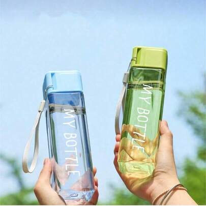 1个500毫升/16.9盎司方形塑料水瓶,大容量夏季水瓶,适合学生使用,防烫设计,便携式咖啡杯,适合户外、露营和返校使用。
