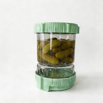 1个50盎司(约1.4公斤)带滤网盖的泡菜罐,宽口大容量,绿色PP材质,防漏黄瓜泡菜汁分离器,适用于自制泡菜/厨房储存和发酵 - 彩色 - 查看 13