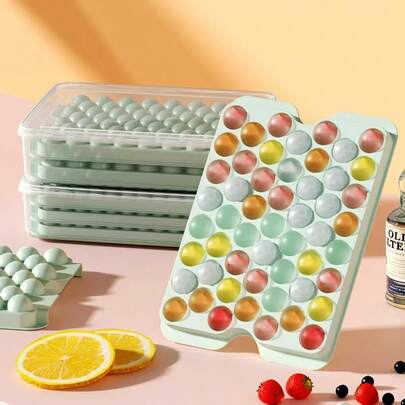 1个53格带盖冰格托盘,DIY制冰模具,家用冰箱储冰盒