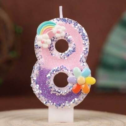 1支六色彩虹0-9数字生日蜡烛,带闪光、亮片和彩色饰边,创意手工蜡烛,适用于生日派对、蛋糕装饰