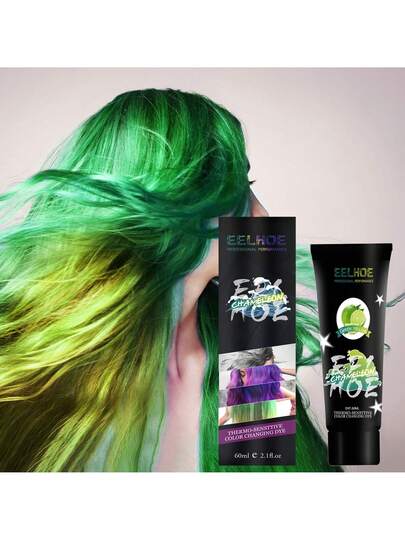 1瓶60ml黃綠色染髮膏,永久染色,防水持久,無害頭皮,男女適用diy髮型膏