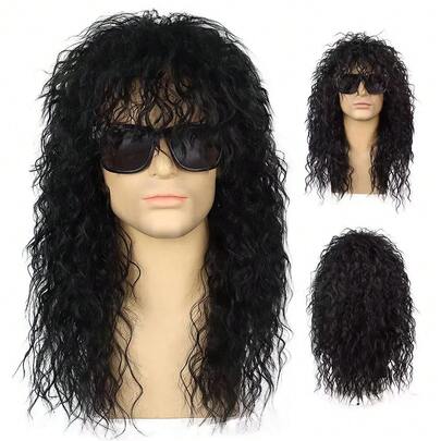 1顶70、80年代摇滚朋克假发,耐热长卷发,多种颜色可选,透气网帽,适合主题派对、音乐节、化装舞会、万圣节和角色扮演(复古摇滚明星风格合成假发)服装配饰