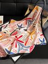 1条女士优雅复古印花薄款缎面方巾,仿丝材质,波西米亚复古休闲风,可作围巾、披肩,轻薄舒适,适合春夏日常佩戴和外出。