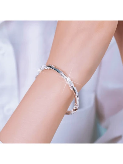 1 件 925 银防过敏花卉图案可调节手镯,设计优雅,适合情人节、母亲节礼物,附赠礼品盒,抗氧化 - 銀色 - 查看 2