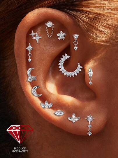 1件925纯银莫桑石钻石星月平底耳环,适合日常佩戴、婚礼、派对、订婚、周年纪念、情人节等场合,奢华珠宝 - 銀色 - 查看 22