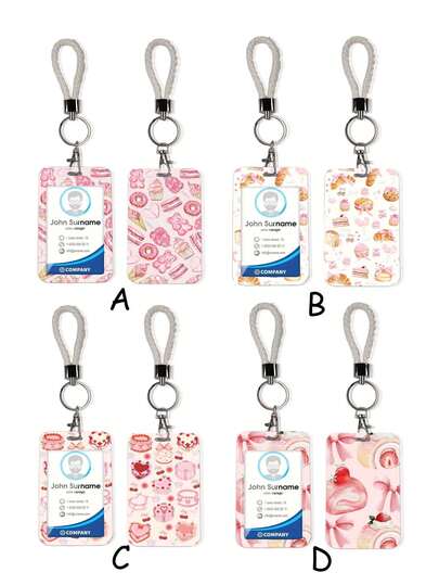 1个ABS甜点系列甜甜圈和蛋糕卷图案时尚个性化卡通拉推式卡夹钥匙扣包挂件,学生腕带卡夹,女学生卡夹,公交卡保护套,学生校园卡保护套 - 長方形 - 查看 12