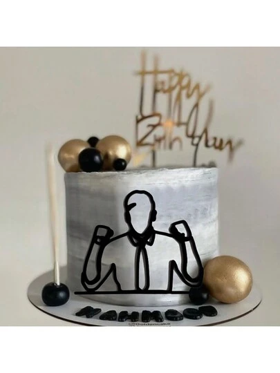1入組亞克力紳士翻領蛋糕裝飾 - 黑色 - 查看 1