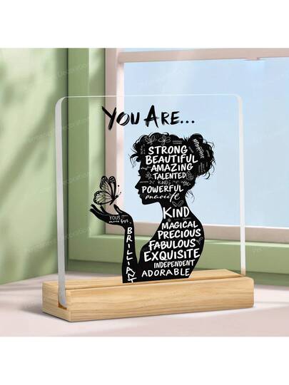 1 件亚克力励志桌面摆件 - 积极肯定装饰,适用于家居、办公室或卧室 - 现代简约风格,非常适合作为生日、乔迁、节日、励志鼓励礼物 - 黑色 - 查看 1