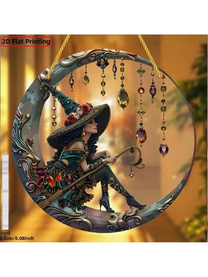 1件亚克力女巫帽装饰品,彩色玻璃艺术壁挂,适用于庭院、花园、卧室家居装饰、万圣节装饰,2D