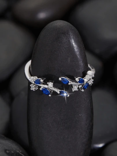 1 件可调节白色方晶锆石母亲节/情人节/结婚礼物戒指 - 寶藍色 - 查看 1