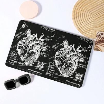 黑色书本式支架保护套,饰有解剖学心脏素描图案,适用于平板电脑 - 专为追求个性、学术和创意风格的爱好者打造,兼容 Air 6/5/4 和 10(10.9 英寸)- 兼容 Pro 2024、Air M3/A16 2025,兼容三星 Galaxy Tab S9 FE/S8 Plus/S7/S10 - 适合工作、旅行和居家休闲,兼容三星平板电脑和小米平板电脑 - 彩色 - 查看 2
