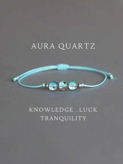 1 件天使光环石英手链形而上学水晶手链女士疗愈手链神秘礼物母亲节礼物绳状宝石手链 - 天藍色 - 查看 2