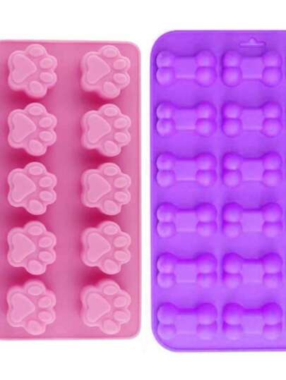 1件装动物狗猫骨头和爪印硅胶烤盘柔性烘焙模具狗狗幼犬零食饼干宠物烤箱套装