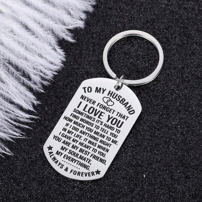 1件周年纪念日丈夫礼物钥匙扣,妻子送给未婚夫/新郎/老公的生日礼物,我的灵魂伴侣,我的全部,可爱“我爱你”礼物,结婚夫妇礼物,送给他的男士礼物 - 銀色 - 查看 1