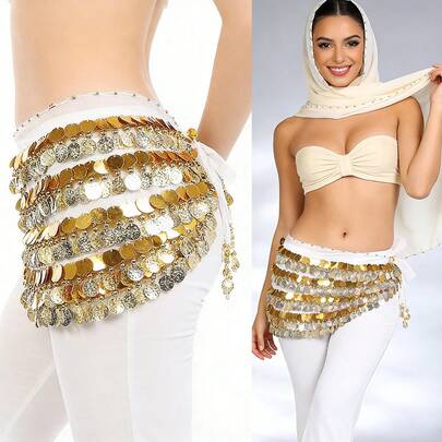 1件阿拉伯肚皮舞腰带 - 288颗铜质多层铃铛装饰腰带,亮片裙摆设计,灵感源自纱丽,适合节日、派对、夜店、海滩、波西米亚风、复古风等场合。 - 彩色 - 查看 21