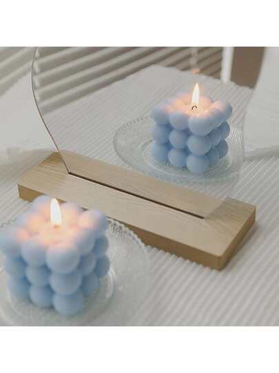2 件(蜡烛 + 烛台)/1 件创意大豆蜡立方体香薰蜡烛,高端婚礼礼品,手工装饰,香薰蜡烛,家用烛台 - 淺藍色 - 查看 6