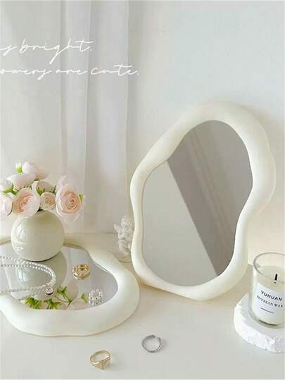 1个不对称梳妆镜,便携式学生宿舍桌面镜,米色,可壁挂,装饰性折叠化妆镜 - 彩色 - 查看 6