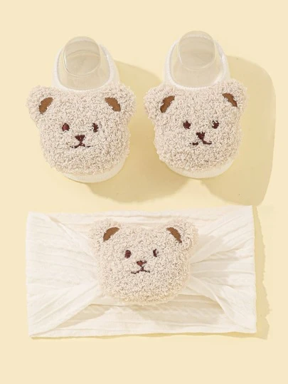 1入組嬰兒熊裝飾髮箍和1雙襪子 - 白色 - 查看 1