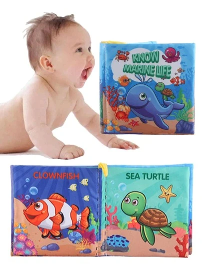 1入組嬰兒布書兒童早教拼圖玩具,1本書4頁8板設計,(部分內容可能隨機) - 彩色 - 查看 2