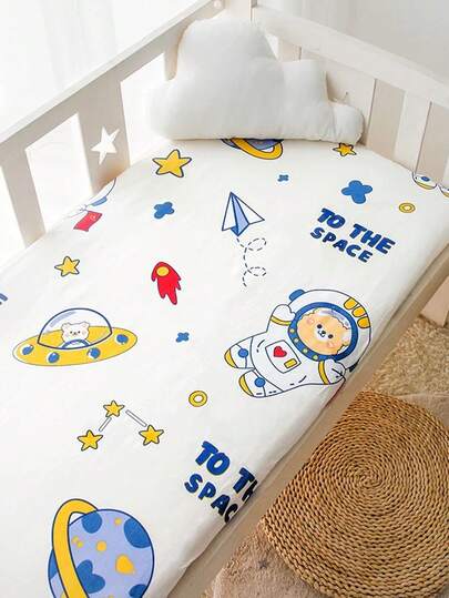 1件婴儿床单,透气吸湿新生儿拼接床垫罩,可爱印花婴儿床上用品套装