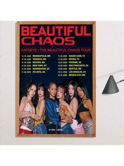 1张精美混沌巡演海报 Katseye 帆布画墙饰 房间装饰 客厅装饰 办公室装饰 卧室装饰 厨房装饰 家居装饰海报 无框 - 彩色 - 查看 1