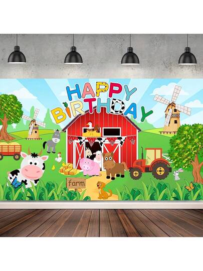 1 件,生日派对背景布横幅,卡通农场动物设计,生日派对装饰,照片背景布,家居装饰,派对装饰,生日蛋糕桌用品,海报悬挂横幅装饰,乙烯基装饰,摄影工作室道具,产品尺寸 150 厘米/59 英寸 * 100 厘米/39 英寸