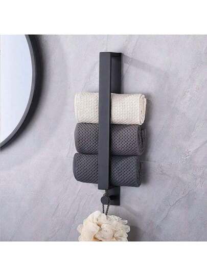 1 件黑色无钻不锈钢毛巾架,适用于浴室和卫生间 - 黑色 - 查看 1