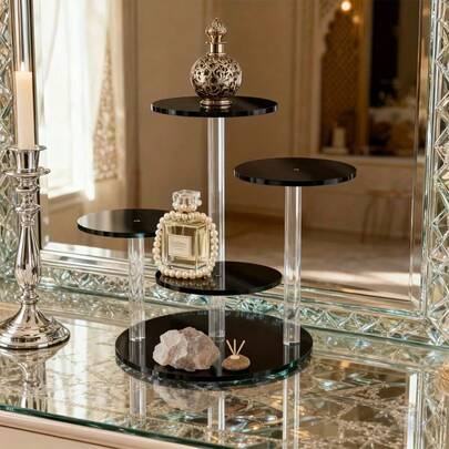 1个黑色圆形多层展示架,装饰展示架,适用于婚礼、派对分层展示、食品、甜点、饼干、收藏品展示、零售桌面展示架及装饰 - 彩色 - 查看 1