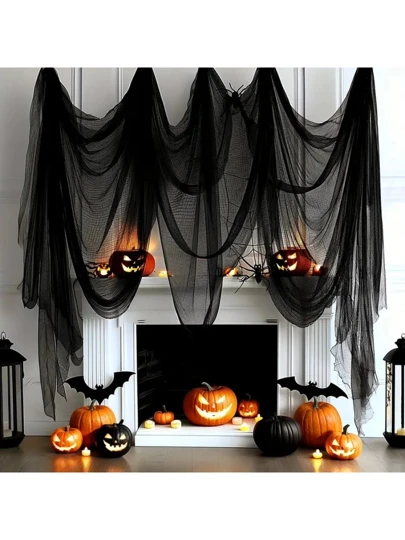1 件黑色恐怖神秘布万圣节装饰,适合万圣节派对、新年派对和其他活动装饰 - 黑色 - 查看 1