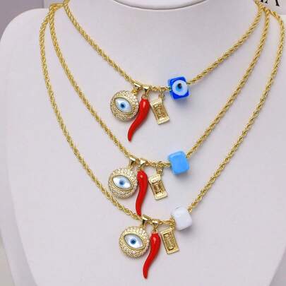 1件装蓝眼辣椒吊坠项链,土耳其眼睛护身符,手工制作,男士幸运礼物