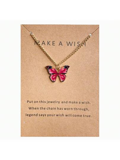 1個波西米亞風格鍍金五色蝴蝶吊墜項鍊,適合日常及春季穿搭 - 粉色 - 查看 2