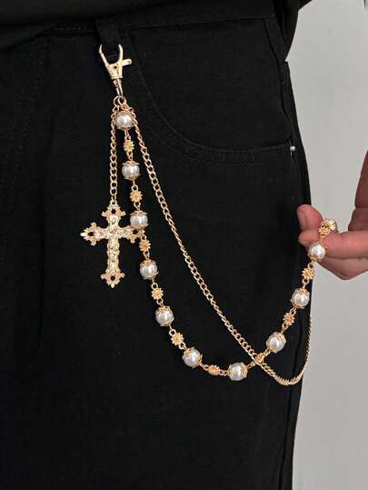 1 件波西米亚多层几何链,人造珍珠串珠十字流苏吊坠身体链,嘻哈时尚,街头风格,休闲,派对,男女通用珠宝腰链礼物 - 褲鏈 - 查看 1