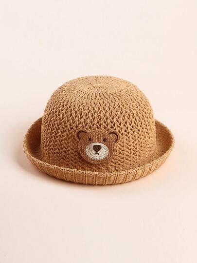 1 件透气针织卡通熊装饰太阳帽,适合婴幼儿男孩女孩 0-18 个月,春夏秋季 - 卡其色 - 查看 1