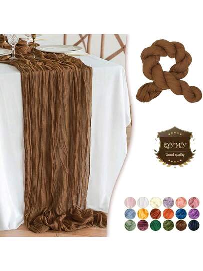 1 件棕色奶酪布桌旗,35 英寸 X 118 英寸波西米亚风纱布桌布,适合新娘送礼会、婚礼、生日派对、宴会、家居、户外野餐装饰 - 彩色 - 查看 1