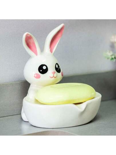 1入組兔子陶瓷肥皂盤,兔子可愛動物肥皂盤帶排水孔,卡通動物肥皂盤,淋浴浴室廚房配件 - 白色 - 查看 1
