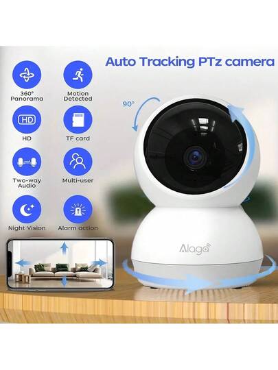 1 台摄像机安全 5G 无线 Wifi 2K 高清无线安全 WIFI 摄像机、AI 智能人体跟踪和运动检测、2.4G/5G 报警推送、视频监控、智能家居安全摄像机 PTZ 摄像机室内外双向音频安全、婴儿/宠物/家庭/办公室监视器 - 白色 - 查看 5