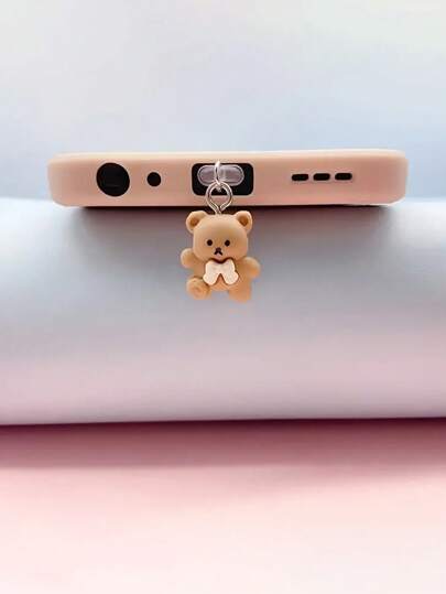 1 件裝卡通熊形狀充電端口防塵塞,兼容 Apple/type-c 端口,手機防塵塞 - 棕色 - 查看 1