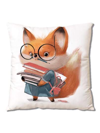 1入組45*45cm卡通狐狸動物紋理聚酯數碼印花裝飾枕套(不含枕芯),適用於客廳沙發 - 彩色 - 查看 1