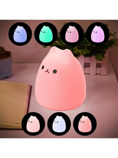 1 件裝卡通矽膠 Led 變色拍打燈貓夜燈室內臥室 - 貓咪 - 查看 1