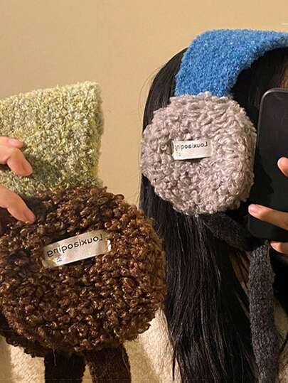 1个休闲加厚保暖耳罩,带系带,撞色耳罩,适合户外骑行,防风保暖耳罩 - 彩色 - 查看 10