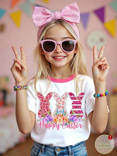 女童休闲上衣一件装,可爱3D兔子印花,适合春夏穿着,圆领撞色设计,柔软亲肤面料,时尚百搭,适合4-7岁女孩。 - 彩色 - 查看 3
