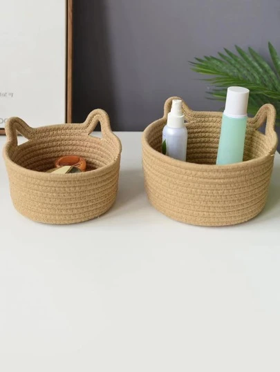 1入組貓耳朵裝飾編織桌面儲物籃 - 米色 - 查看 1