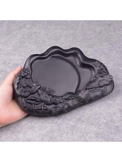 1 块成泥砚,荷塘图案,适合书法使用 - 传统中国学生初学者书法墨石磨墨 - - 黑色 - 查看 1