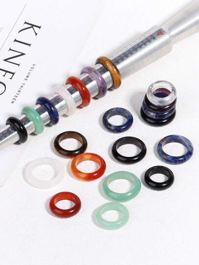 1 件圆形天然石女式男式水晶戒指 17 毫米 19 毫米疗愈黑曜石虎眼白石英水晶紫水晶红玛瑙戒指适用于珠宝制作 DIY 吊坠项链配饰 - Ring - 查看 7